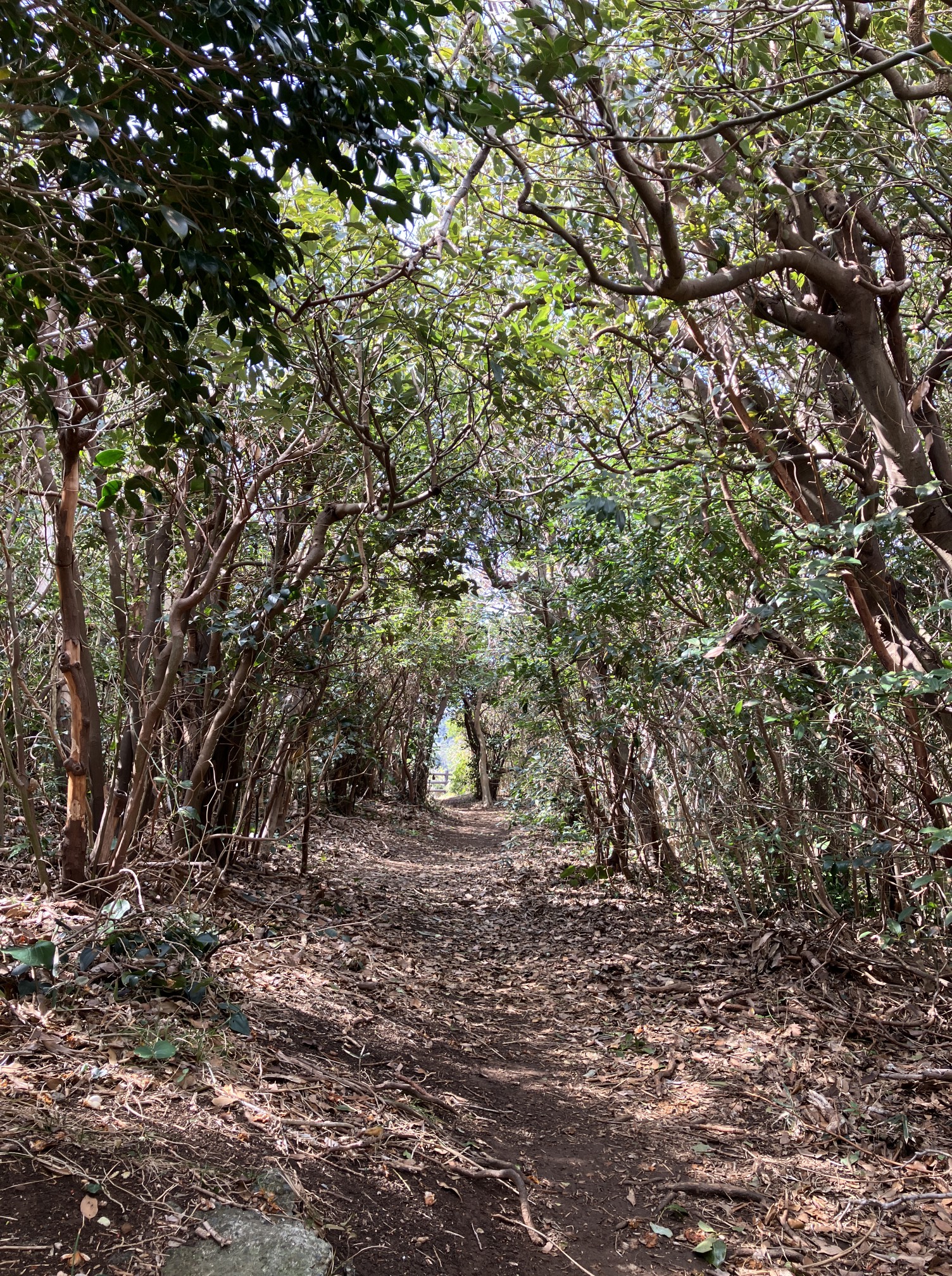 家族は名古屋から車で,私は東京から電車で三島駅8:30すぎ到着目標で集合しました。合流後は下田へ向けて出発です。途中,河津桜も見ようかと思いましたが,川べりがすでに葉桜になっていたのでスルーしました。ということで,最初に向かったのは「爪木崎」です。東京は水仙がきれいに咲いていますが,残念ながら伊豆はほとんど終わっていました。でも,「となりのトトロ」に出てくる,サツキとメイがトトロの家に行くために通ったような木のトンネル小径とか,灯台,柱状節理の「俵磯」など見どころはあり,結構楽しめました。