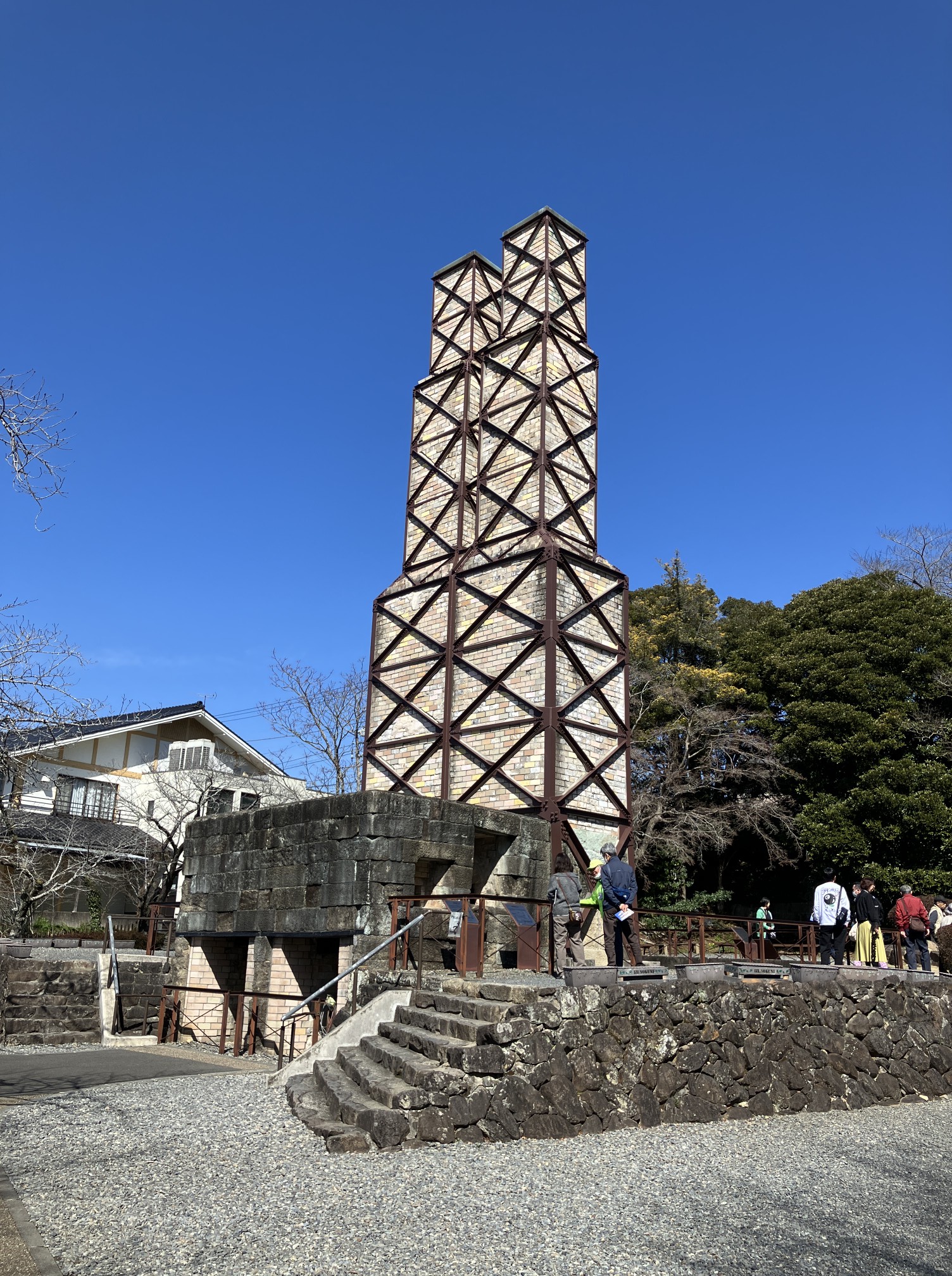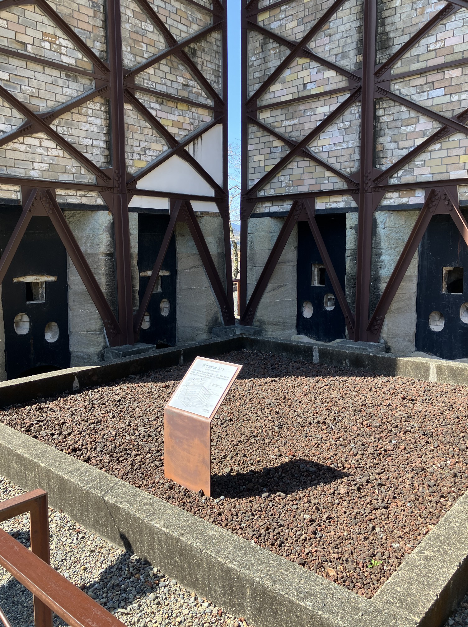 次に,「一碧湖(大池)」に行きました。あいにく強風で池の周遊路が吹き寄せられた波を受けて濡れており,残念ながら身の危険を感じたのですぐに退散しました。その後は伊豆半島を北上して世界遺産の「韮山反射炉」へ行きました。韮山反射炉は,何十年も前から気になっていたのですが,なかなか機会に恵まれず今回はじめての訪問でした。私はこの「反射炉」という言葉について,勝手に「太陽の光を反射させて云々・・」と思っていたのですが,全然違っていました(汗)。銑鉄を溶かす際に石炭の熱を炉の中(ドーム天井)で反射させて高温を得る炉なんですね。そうやって作った鉄で大砲を作ったっていう施設らしいです。