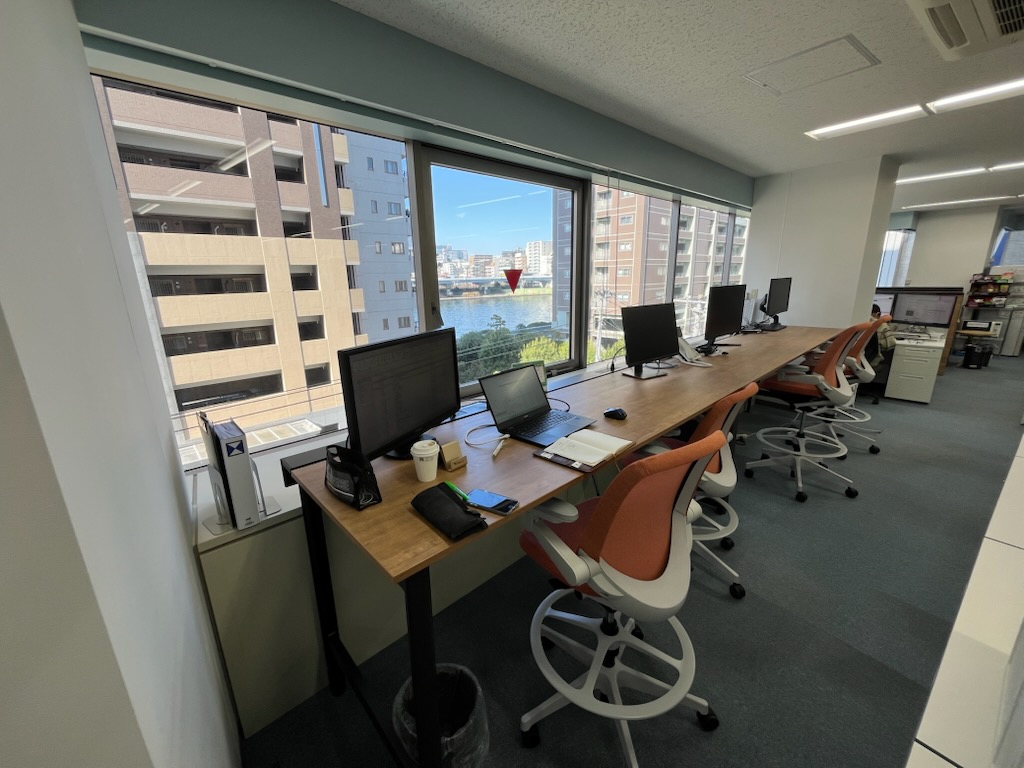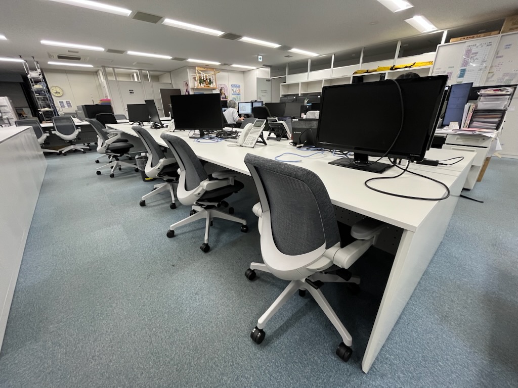 本店のフロアを一部改造しました。フリーアドレス制を導入し、カウンター席(集中席)、ファミレス席などを設けました。快適な職場環境を目指します。
