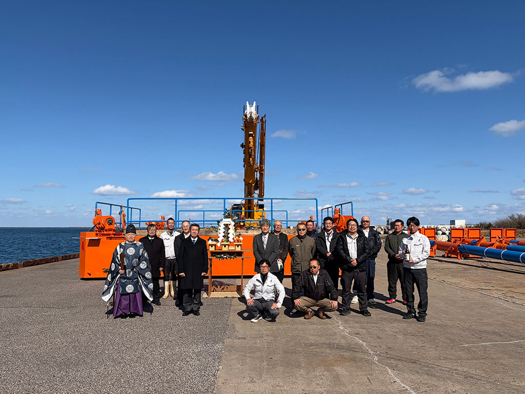 小型SEP,中型SEPに続き、新たに大型SEP(10m×10m)を建造し、2026年3月11日に茨城県鹿嶋市鹿島港にて安全祈願祭を執り行いました。これによって,適用水深10mの小型SEPから適用水深24mの大型SEPまで揃うことになり,より幅広い現場条件に適応できることになります。